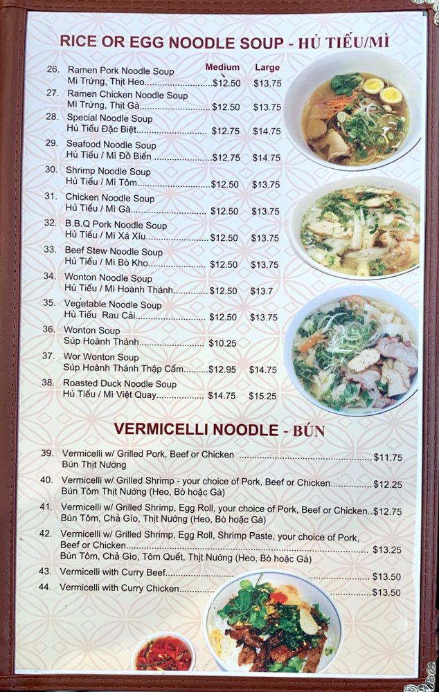 One highlight is their Vermicelli Noodle offerings, including the savory Bún Tôm, Chả Gio with grilled shrimp and egg rolls, perfect for a light yet satisfying meal. If you're in the mood for something heartier, the Rice or Egg Noodle Soup selections are sure to impress; try the Wonton Noodle Soup or the rich Roasted Duck Noodle Soup. The Grilled Rice options, featuring grilled pork spare ribs and pork chops, maintain a deliciously authentic flavor profile that will leave you wanting more.
